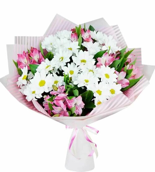 Хризантемы и альстромерии представлены в большом разнообразии форм и цветов. Вы можете выбрать букет с яркими крупными цветками или предпочесть нежные пастельные оттенки. Комбинируйте различные сорта и создавайте уникальные композиции.
