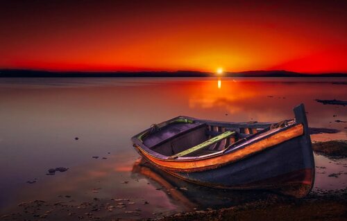 Лодка на закате - это поистине волшебное сочетание воды и неба. Мягкий отсвет солнечных лучей, отражающихся в водной глади, создает удивительные игры света и тени. Каждое фото - это маленькая история, рассказывающая о тайных мечтах и романтических приключениях.