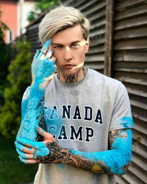 На первом фото Дима Евтушенко предстает перед нами с загадочной улыбкой. Его глаза словно скрывают множество тайн и секретов.