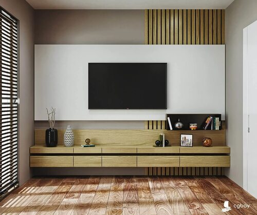 Идеи для использования реек на стене под телевизор