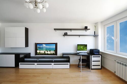 Гостиная – это место, где мы проводим много времени, расслабляемся и развлекаемся. Компьютерный стол и телевизор являются неотъемлемыми элементами современного интерьера. Они помогают нам работать, общаться, получать информацию и развлекаться.