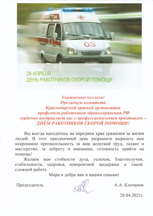 Поздравляем всех, кто связан с работой в скорой помощи! Ваша профессия требует мужества, отваги и преданности. Вы спасаете жизни и приносите надежду в трудные моменты. Ваше служение заслуживает особого внимания и признания.