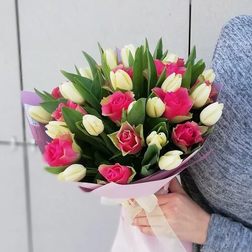 Букет розы и тюльпаны - это прекрасный выбор для особых случаев, таких как День Рождения, Юбилей, День Святого Валентина или просто для того, чтобы сделать приятное настроение близкому человеку.