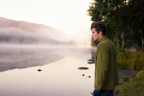 Представьте себе красивую картину: человек на берегу озера, окруженный прекрасной природой. Это место, где можно насладиться тишиной и спокойствием, поблизости от воды, солнца и величественных гор.